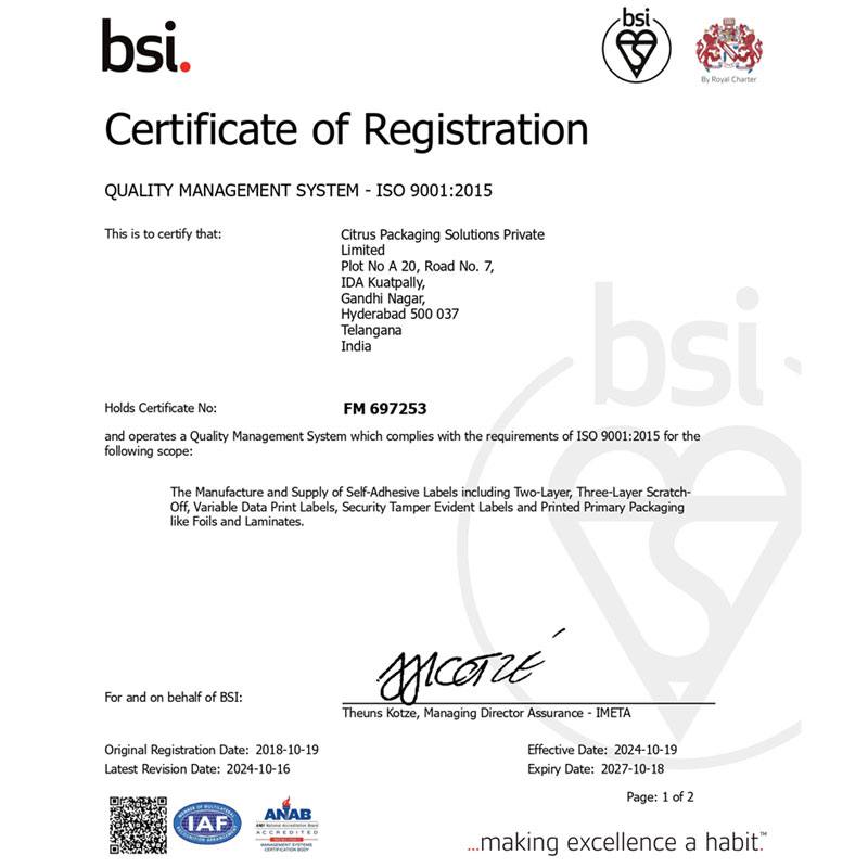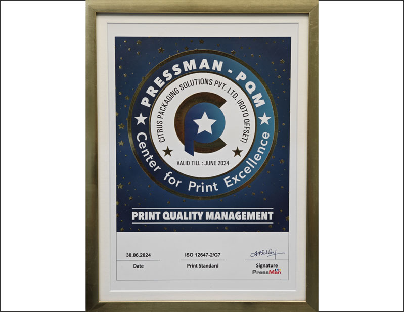 At Citrus Pack, quality isn’t just a goal—it’s a standard we live by every day. That’s why we’ve taken the step to get certified under the Print Quality Management program by Pressman in Chennai. This certification reflects our commitment to maintaining the highest levels of consistency, precision, and control across our printing operations. Through intensive hands-on training and process calibration, our team has gained deeper expertise in color management, ISO/G7 standards, and pressroom best practices. By investing in this certification, we’re ensuring that every label we produce meets the strictest quality benchmarks—something our clients can rely on, every single time.